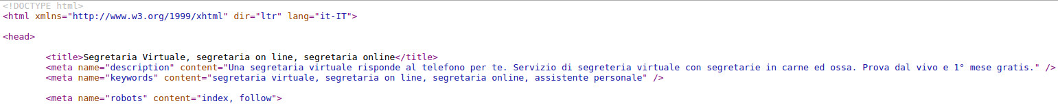 I meta-tag inseriti nella home page di segretariaincloud.it