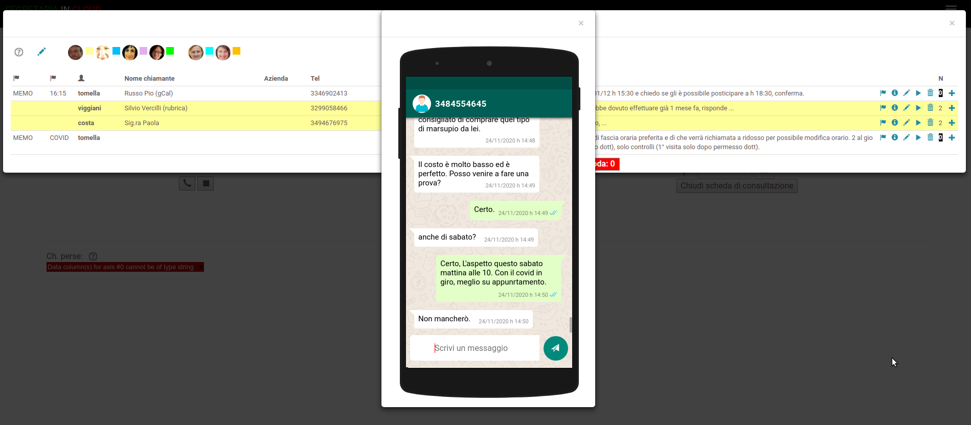 Quello che vedi è la riproduzione di uno smartphone virtuale in uso dentro al nostro sistema in cloud, in modo che le nostre segretarie possano scrivere al cliente in tempo reale.
