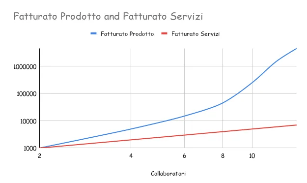 Siamo una piccola azienda nel mondo dei servizi e Massimo Sgrelli spiega bene in questo articolo la differenza tra noi e un’azienda unicamente di prodotto (tipica curva di crescita non lineare di un business scalabile e vendibile ovunque e gestibile con un piccolo team).
